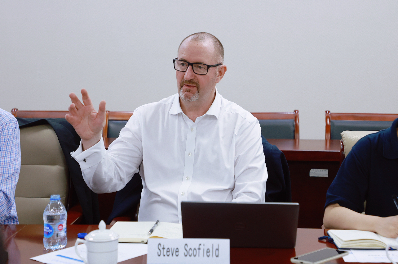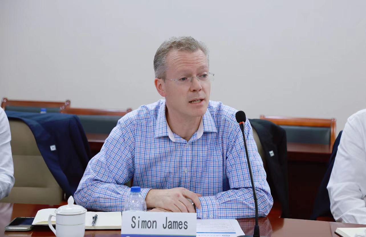 Simon James对学院汽车实训中心完备的硬件设施设备表示赞赏。他简要介绍了IMI的基本情况、所从事的领域及机构的优势。他希望通过本次交流活动,促成学会和学校的合作,运用IMI国际职业资格的优势资源为学院培养更多高技能人才。