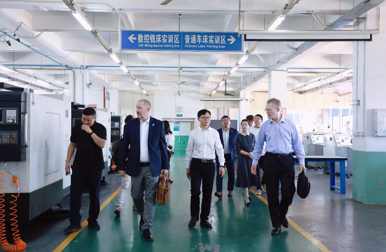 Simon James一行还饶有兴趣地参观了学院汽车实训中心、数控实训中心、世赛精细木工项目国家集训基地。