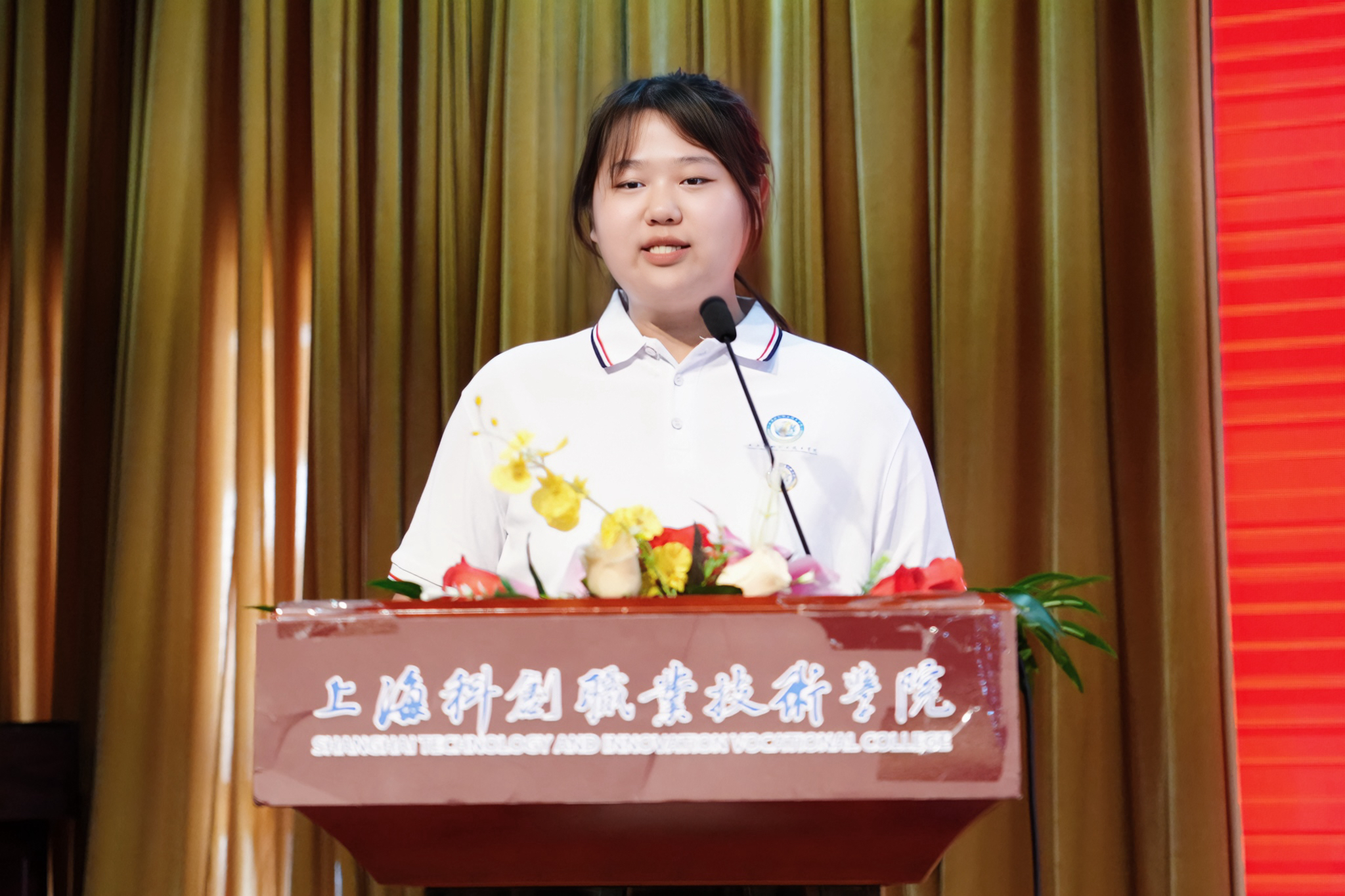 2024级新生代表、智慧服务学院的陈怡帆发言,表达了对大学生活的美好憧憬与坚定信心,展现了新生代的蓬勃朝气与无限可能。