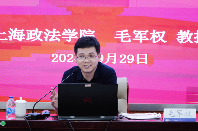 9月29日下午,学院特邀市教卫工作党委系统专家宣讲团成员、上海政法学院副校长毛军权教授开展学习贯彻党的二十届三中全会精神专题辅导报告。学院党委副书记、院长李闽洲,党委委员、常务副院长李志伟,副院长何佩军、项国平出席活动。活动由李闽洲主持。