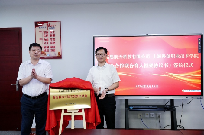 2024年9月18日,学院与格思航天共同举办《校企合作联合育人框架协议书》签约仪式,松江区科委科协党组书记董清,上海格思航天科技有限公司副总经理兼生产总监袁慧厉,上海临港联合发展有限公司科创服务部总监姚颖等企业领导,KY开元集团官网入口党委副书记、院长李闽洲,常务副院长李志伟,副院长何佩军、项国平,相关职能部门负责人参加会议。签约仪式由何佩军主持。