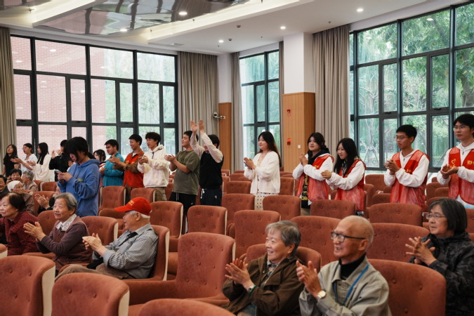 演出结束后,一位老爷爷主动上台,用他那深情的嗓音唱起了沪剧《芦荡火种选段·开方》,以此来表达对志愿者们的感谢,全体志愿者不由自主地拍手合唱,场面温馨而感人。随后,大家合影留念,定格下了这难忘的时刻。虽然这次活动已经告一段落,但科创学子们传承中华民族尊老敬老的传统美德的决心将会慢慢延续。