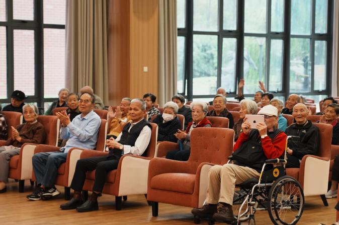 开场前,志愿者们准备了暖场歌曲,悠扬的歌声瞬间点燃了现场的氛围,让老人们脸上洋溢着温暖的笑容。