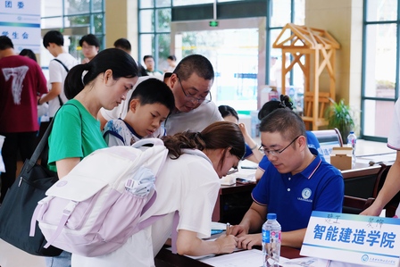 烈日当空,气温不减,但这份酷暑并未能阻挡新生们对新学期生活的向往与热情,反而让这份开学的喜悦更加热烈而真挚。学院精心组织的师生志愿服务团队早已各就各位,科创志愿者们手持小推车,手拿指示牌,穿梭在人群中,为新生及家长提供细致入微的服务。从行李搬运到报到引导,从车站接车到接待咨询,每一个环节都充满了温暖与关怀。