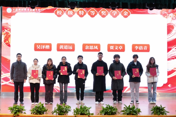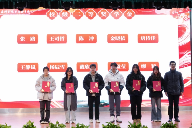 常务副院长李志伟、副院长项国平为校级奖学金获得者颁发荣誉证书。
