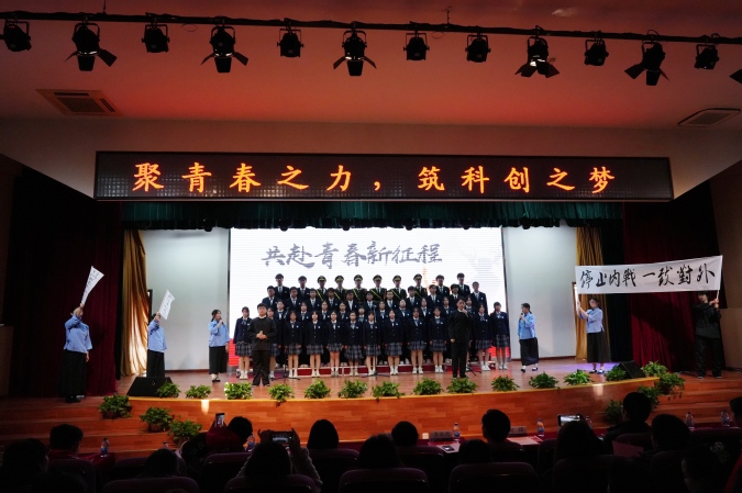 校合唱团演唱《强军战歌》,不羁的旋律,激荡着内心的热血。历时近两个小时的文艺汇演在诗词和歌声中圆满落幕,现场气氛热烈而欢快。