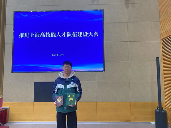 1月9日上午,推进上海高技能人才队伍建设大会在中共上海市委党校召开。会议表彰了2024年上海工匠代表,学院邵茹鹏老师作为2024年上海工匠代表,接受市领导授牌和颁发证书。据悉,邵茹鹏以 22 岁的年龄成为历届 “上海工匠” 中最年轻的获得者,也是本年度松江区唯一获得者。