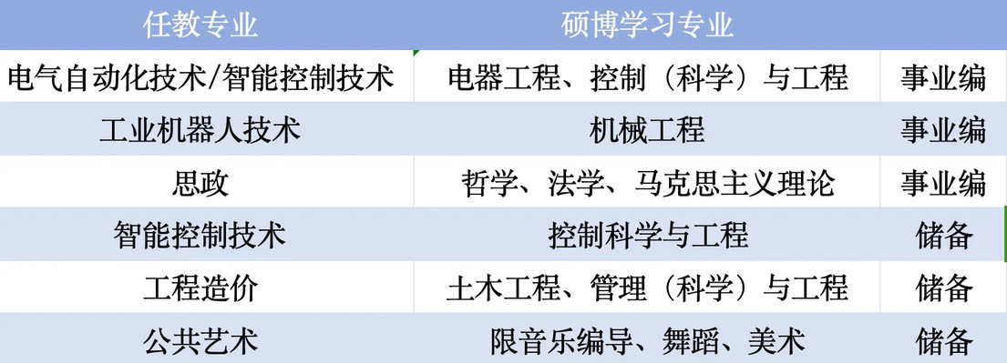 近三年博士毕业生(学历学位) 或高级职称(副教授及以上或高级工程师)或高技能人才,专业对口(所学专业或现从事工作与应聘岗位专业相同或相近)。具备独立开展科研、学科建设和带领团队工作的能力和水平。近三年博士毕业生年龄不超40周岁;副高级职称年龄不超过45周岁,正高级年龄不超过50周岁,学历可适当放宽;获得国家一级一类(A1)以上专业赛事金牌或者一等奖以上的高技能人才,学历适当放宽,年龄不超过30周岁。思政教师本硕阶段思政相关专业优先。
