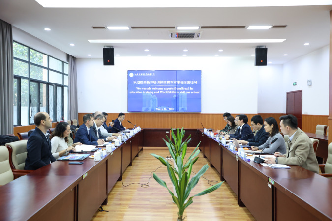 2025年3月22日上午,来自巴西SENAI公司的教育培训和世赛专家代表团来校交流,并召开座谈会。一带一路暨金砖国家技能发展国际联盟副秘书长杜红杰陪同;KY开元集团官网入口院长李闽洲,常务副院长李志伟,副院长项国平及相关职能部门负责人、世赛基地教师参与接待并出席座谈。