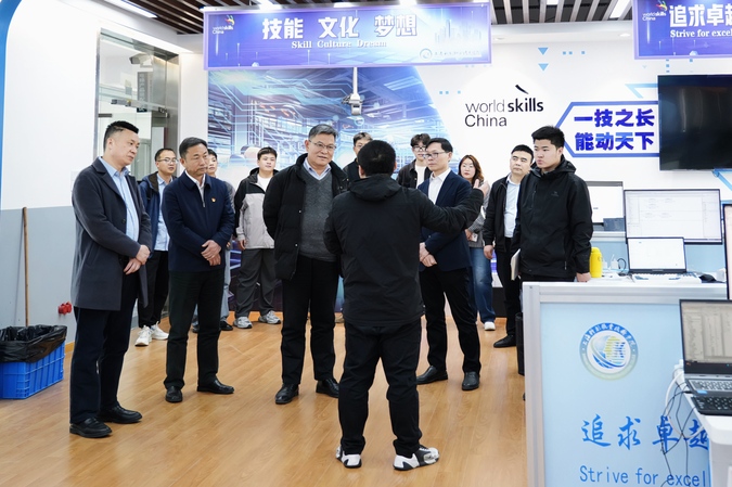 会前,华东政法大学国际法学院一行在何锋、李闽洲陪同下参观世赛集训基地和汽车、数控、工业机器人等实训中心。