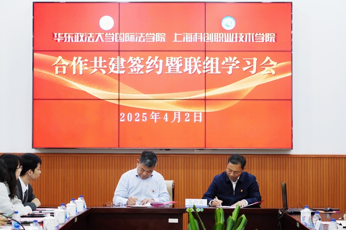 4月2日下午,华东政法大学国际法学院党委书记曹都国、院长杜涛、党委副书记侯玉芹一行来校交流指导,双方签订合作共建框架协议并开展理论学习中心组(扩大)第一次联组学习会。学院党委书记何锋,党委副书记、院长李闽洲,党委委员、常务副院长李志伟,副院长何佩军、项国平出席活动。
