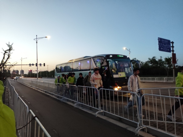 志愿者们统一乘坐专车到达现场
