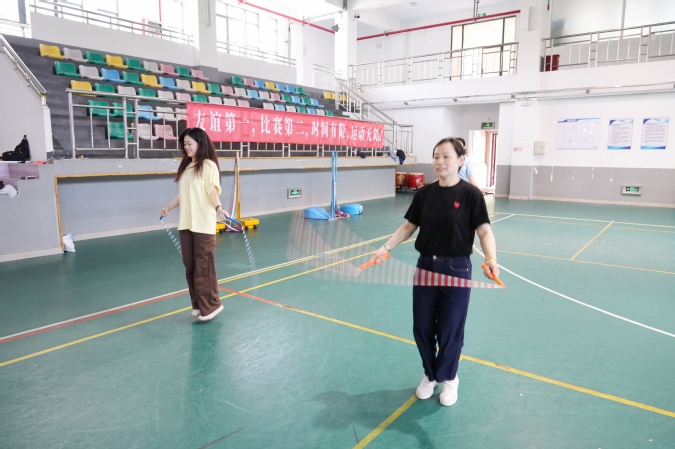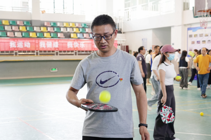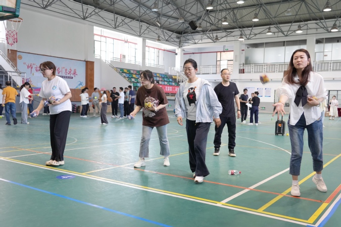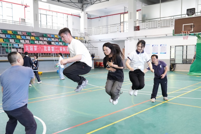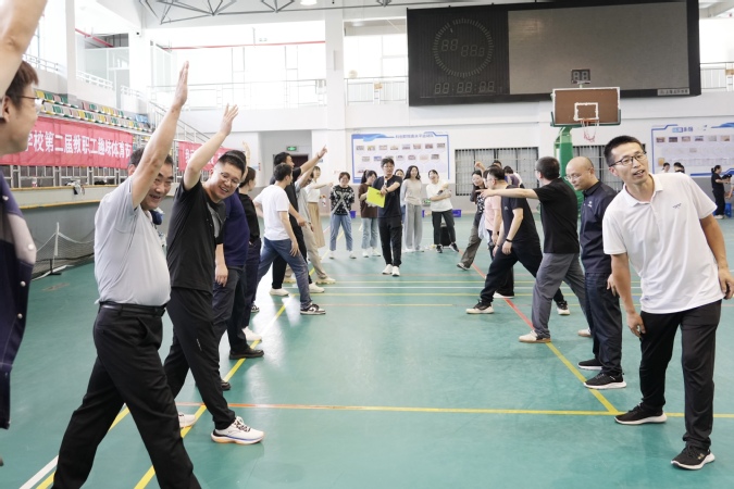 此次运动会延续了“趣味与竞技并存”的理念,共设置一分钟跳短绳、匹克球正反拍球、定点丢沙包3个个人项目,以及跳大绳和脚斗士版“石头剪刀布”2个团体项目。平日严谨治学的教职工们化身运动健将,在充满趣味的比赛项目中挥洒汗水,展现别样风采。
