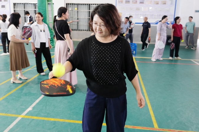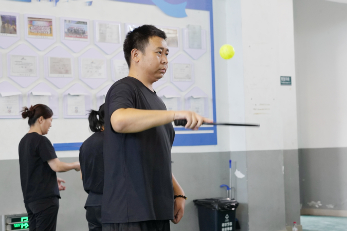 一分钟跳短绳比赛里,只见老师们身轻如燕,绳子在脚下飞速穿梭,大家争分夺秒,挑战自我;匹克球正反拍球项目是今年趣味运动会的新增项目,吸引了一众老师前去尝试,大家专注地用球拍正反手交替击球,时不时引来一阵赞叹;丢沙包比赛现场,老师们站在起点线后,眼神坚定地瞄准不同距离的投掷点,精准投掷,力求获得更高分数。