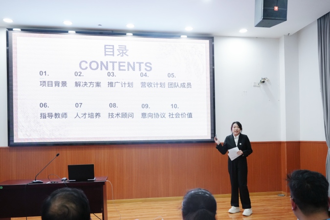 决赛采用“现场路演+评委提问”的形式。各参赛团队通过精心准备的PPT演示、产品原型展示,以及清晰流畅的陈述,全方位阐述了项目创意、技术原理、创新点、市场前景、团队构成及未来发展规划。