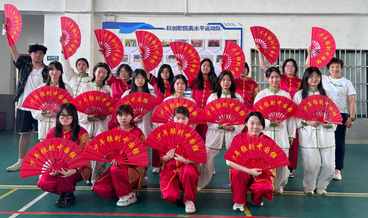 在武术拳操功夫扇赛项中蔡岷秀、雷婷、朱佳等同学荣获女子双人组、女子团体功夫扇斩获三等奖。