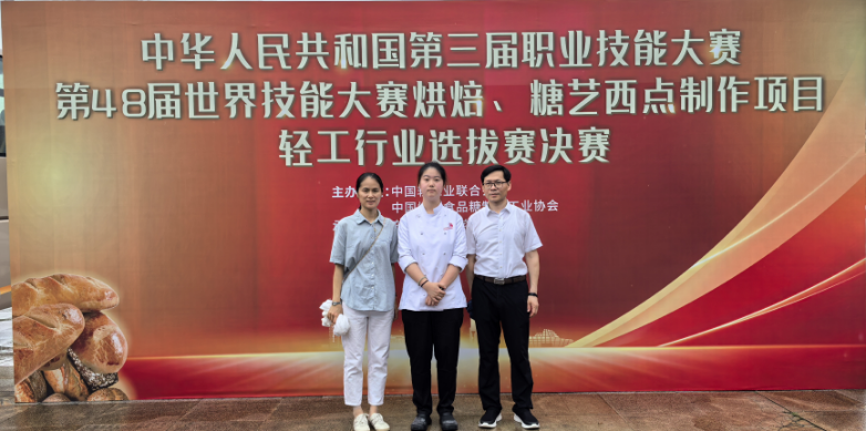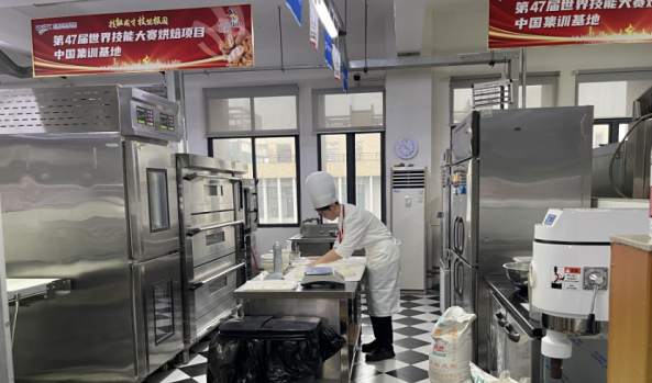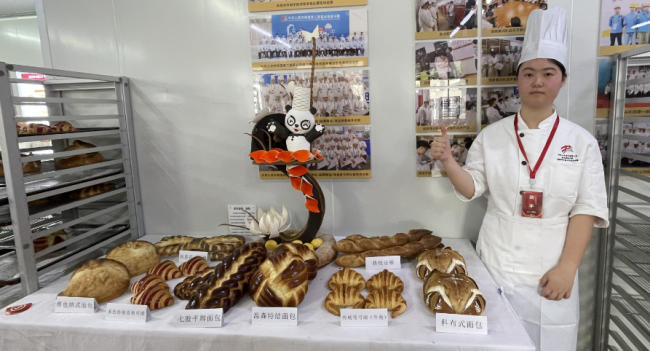 在烘焙赛项轻工行业选拔赛决赛中,选手姚静怡以近乎完美的表现夺得二等奖。本次大赛技术要求极高,选手需在7.5小时内完成包括小麦/酸面包、辫子面包、法棒面团、可颂面团以及艺术面包与摆台在内的7个模块。