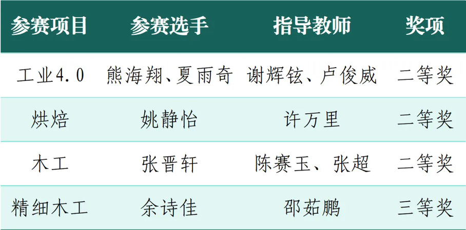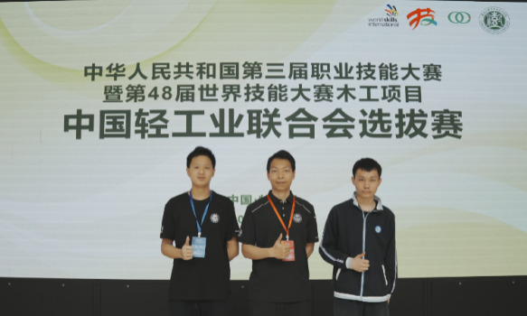 在轻工行业选拔赛中,中国轻工业联合会和中国家具协会联合主办了家具制作、木工、精细木工等赛项。赛事分别在江西、黑龙江、广东举办,学院世赛木工类项目团队分组行动。张晋轩、余诗佳、朱宇杰等选手在强手如云的赛场上奋力拼搏,取得了多项新的个人突破。