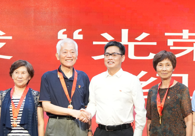6月27日,区教育系统“薪火相传映初心 五秩荣光铸党魂”——“光荣在党50年”纪念章颁发暨预备党员入党宣誓、党委班子重温入党誓词活动在松江二中图书馆举行,学校退休支部肖石炼同志获颁纪念章。五十载峥嵘岁月,五十载初心如磐。肖老师数十年如一日践行初心和使命,为松江教育积极贡献智慧和力量。活动中,区教育工作党委、区教育局领导向老党员为党的教育事业、为松江发展做出的贡献表示崇高的敬意。