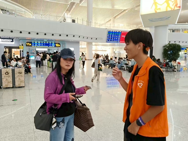 杨周怡:由于上海松江站还是一个新站,大多乘客对站内分布和环境还不太了解,对我们的服务就提出了更高的要求,但是打响上海松江站的名片也是我们的重要责任。穿梭在站内,协助乘客搬行李,给乘客指路,维持站内秩序,做志愿者的每一天都过得很充实。