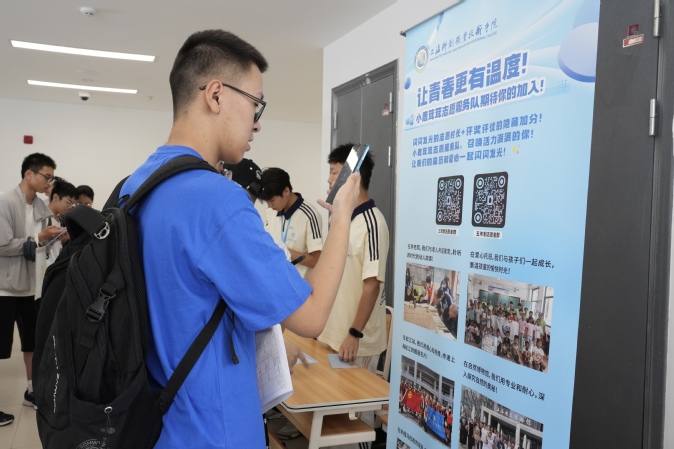 由学院师生组成的志愿服务团队早已各就各位,大家身着统一的服装,热情主动为新生及家长提供服务。