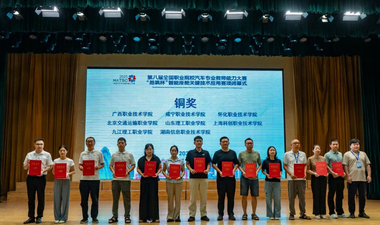 8月8日至10日,第八届全国职业院校汽车专业教师能力大赛“易飒杯”智能座舱关键技术应用赛项在山东烟台举办,全国20个省(自治区、直辖市)63所职业院校的81支队伍晋级全国总决赛。智能汽车学院教师宋名洋、徐华伟组成的团队,凭借扎实的专业能力在“易飒杯”智能座舱关键技术应用赛项中获铜奖。