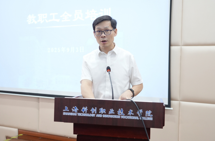 本次培训,学院邀请松江区经委主任李磊为全体教职工进行《聚焦“2+4”产业体系,构建产业发展生态 打赢松江产业转型发展的攻坚战突围战》的专题宣讲,这也是学校“格物致知讲堂”开展的系列活动。讲座围绕松江两大先导产业、四大重点产业,结合真实产业案例,清晰呈现了松江产业转型的突破点与未来趋势。他指出,产业转型升级亟需高素质技术技能人才的支撑,学院发展要精准对接区域产业发展需求,推进产教深度融合,实现人才培养与产业发展的同频共振。