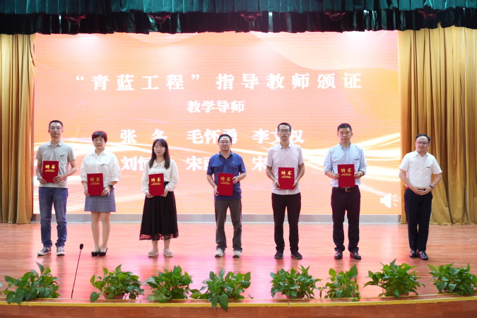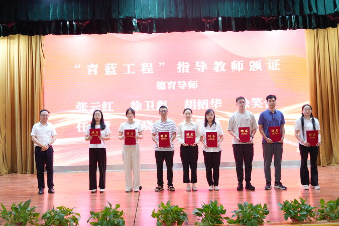 学校授予从教30年的沈红梅、孙瑜两位同志“杏坛耕耘奖”。为“青蓝工程”中青年教师的教学导师、德育导师及校外导师颁发了聘书。