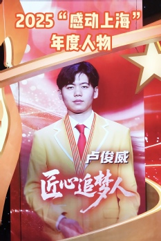 “用青春打磨未来挑战,用技能问鼎世界巅峰。有请2025‘感动上海’年度人物——匠心追梦人卢俊威。”