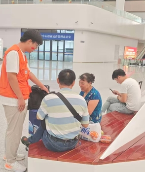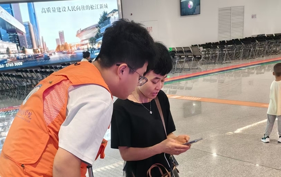 在服务台、网约车站点、出租车站点、出站口、地铁站出口,到处都是科创志愿者忙碌的身影,他们手持小国旗,用热情和汗水为出行的旅客送上了一份温暖的“节日礼物”。