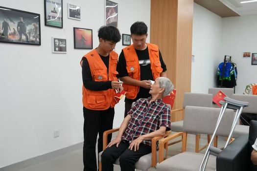 小鹿茸茸志愿者服务队前往松江福利院。志愿者们耐心陪伴老人们唱红歌,在歌声中传递对祖国的热爱,在志愿服务中不断提升社会责任感。