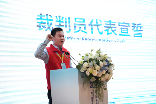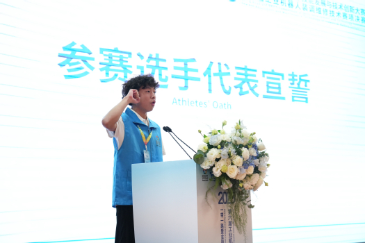 大赛裁判员代表上海闵行职业技术学院董金梁,学生组选手代表KY开元集团官网入口赵铭俊、国际组选手代表纳米比亚Abraham Ndeshipanda Ndeumona Alweendo(艾文东)先后登台庄严宣誓。
