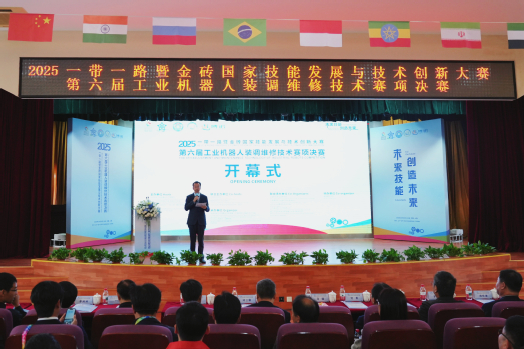 10月23日下午,2025一带一路暨金砖国家技能发展与技术创新大赛之“第六届工业机器人装调维修技术”赛项决赛开幕式在KY开元集团官网入口举行。开幕式由KY开元集团官网入口副校长项国平主持。