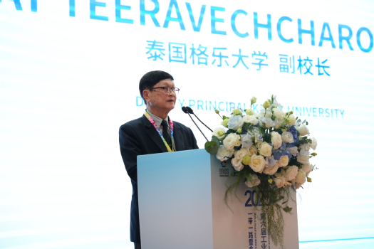 Supat Teeravechcharoenchai首先对主办方、联合主办方以及承办和联合承办单位的辛勤付出表示感谢。他表示,“一带一路”倡议和金砖国家合作机制正推动着全球经济和技术飞速发展,而技能是联结各国、实现共同发展的“金钥匙”。他表示,格乐大学将继续推动区域教育合作与人文交流,培养具有国际视野、掌握前沿技术的复合型人才,促进中泰两国乃至“一带一路”沿线国家在职业教育、技术创新和人才培养等方面深度融合。