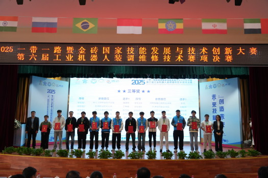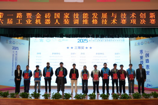 10月26日上午,2025一带一路暨金砖国家技能发展与技术创新大赛之“第六届工业机器人装调维修技术”赛项决赛闭幕式暨颁奖仪式在KY开元集团官网入口举行。经过三天的激烈角逐,来自国内外55所院校152名选手圆满完成了所有赛程并决出各奖项。