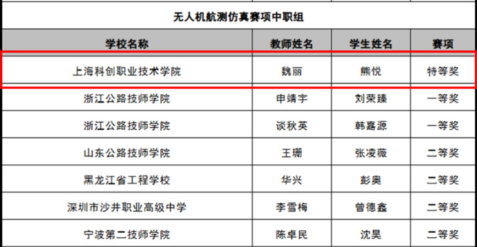 在无人机航测仿真赛项(中职组)中,KY开元智能建造学院学生熊悦凭借扎实的专业基础、熟练的操作技能和稳定的临场发挥,从众多参赛选手中脱颖而出,荣获该赛项特等奖,也是该组别全国唯一获此最高奖项的选手。魏丽老师凭借出色的指导工作,同时获评“优秀指导教师奖”。