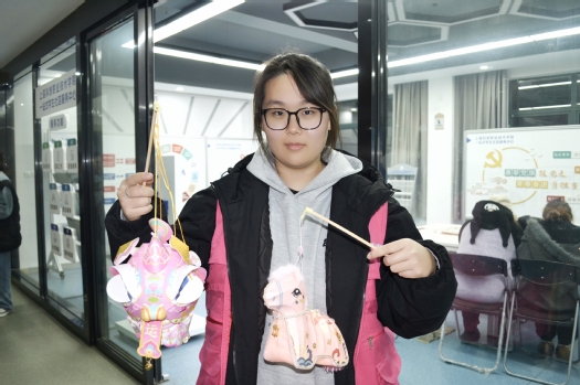 花灯、剪纸、福字挂件齐上阵。你帮我裁纸,我教你折花,一盏盏红灯笼点亮了节日夜晚。