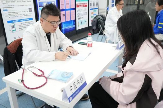 把脉、问诊、健康咨询——来自松江区方塔中医医院的中医内科、骨科、内分泌的医生们一对一为同学们现场诊疗。现场还有中药材的展示介绍以及中医茶饮品尝,熬夜党、养生派纷纷前来,听听中医怎么说,给自己的健康“把把脉”。
