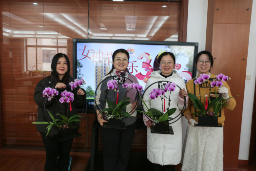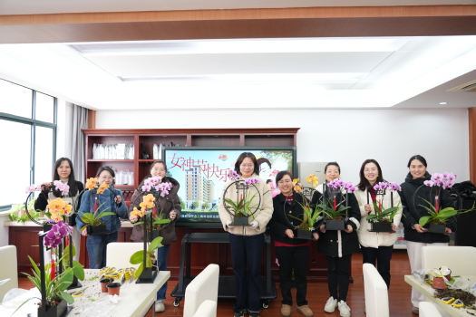 大屏幕上唯美的画面、振奋人心的宣传语、清新雅致的蝴蝶兰、笑意盈盈的女教师....... 春日的校园洋溢着节日的氛围。在第116个“三八”国际劳动妇女节来临之际,为深入贯彻松江区教育系统“巾帼心向党 实干建新功”的妇女节活动主题,切实提升女教职工的获得感、幸福感,学校工会精心策划了“一路向春 满袖芬芳”兰草中式置景DIY活动。3月6日下午,活动在学校11号楼教工之家二楼咖啡厅温馨启幕,全校女教工会员分四场参与,在指尖生花的美好体验中,共赴一场春日之约,共度专属巾帼的美好节日。