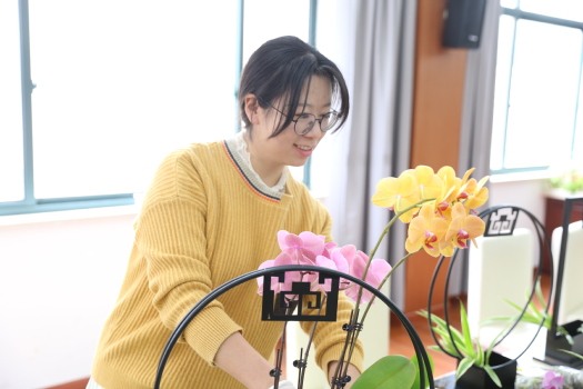 实操环节,女教职工们化身“花艺匠人”,在花艺师的耐心指导下,充分发挥巧思与创意,修枝、造型、布景、定型,每一个步骤都细致用心。平日里耕耘在讲台、奋战在教学管理一线的巾帼们,此刻放慢脚步,在一花一叶的搭配中感受手工创作的乐趣,在交流探讨中分享生活的美好。经过近一小时的精心打造,一盆盆意境悠远、独具匠心的兰草微型景观相继成型,清新雅致的蝴蝶兰在大家的巧手下,绽放出别样的春日韵味。活动结束后,大家纷纷带着自己的作品合影留念,将这份春日的美好与节日的喜悦珍藏。