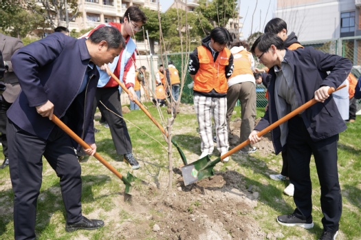 校领导与同学们并肩劳作,挖坑、扶苗、培土、浇水,“劳动光荣、绿色发展”的价值观念在谈笑间自然传递。现场分工明确、配合默契,工作人员穿梭其间巡回指导,确保每一棵树苗都栽得规范、种得安心。短短半小时,几十株树苗便在春风中稳稳立起。