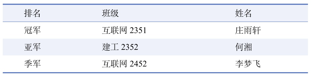 历经多日激烈角逐,各项冠亚季军在全场欢呼与掌声中荣耀诞生。在层层比拼后,以下班级与同学凭借出色表现斩获佳绩: