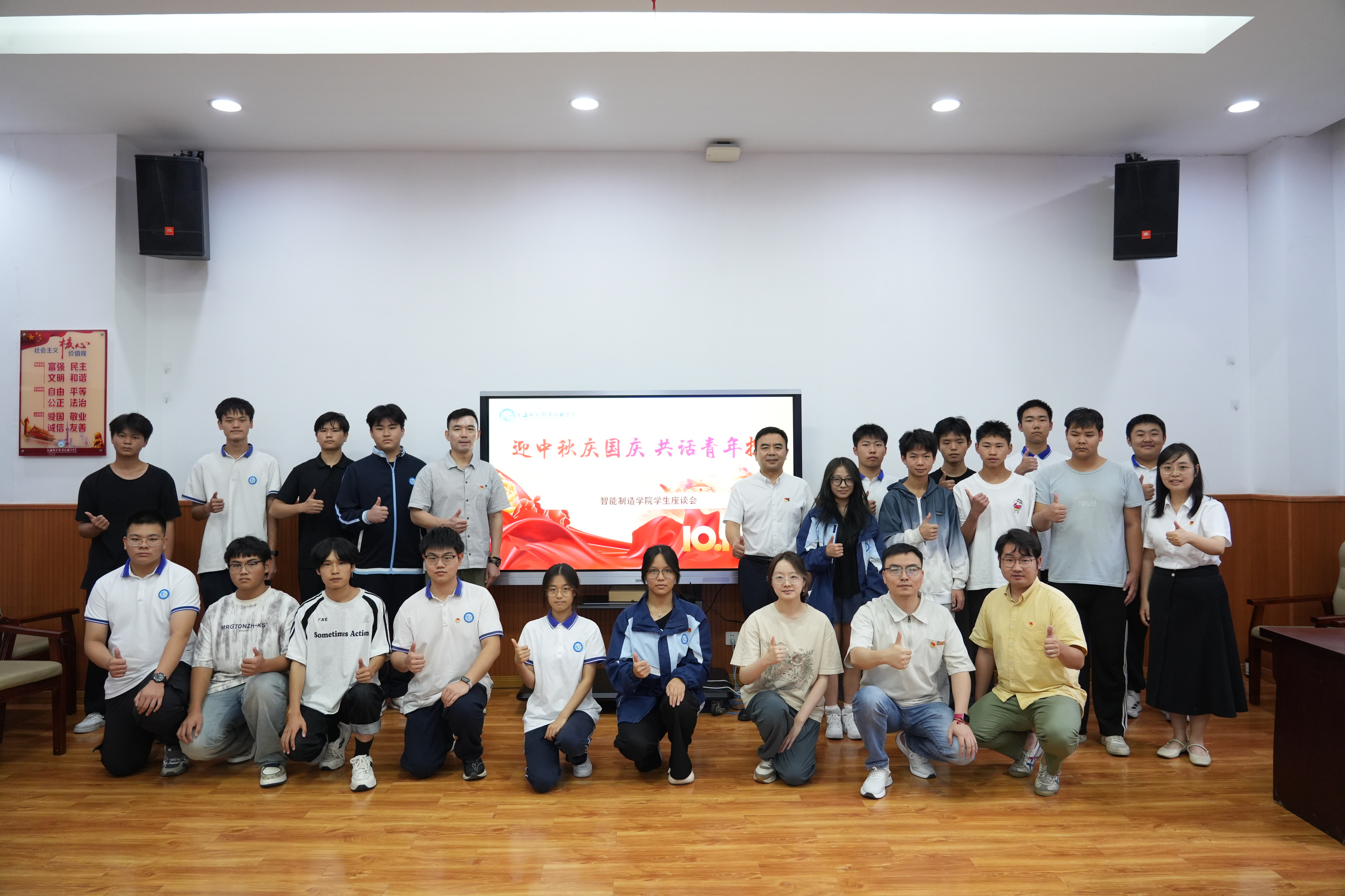 金秋送爽,丹桂飘香。9月30日,在中秋佳节与国庆华诞相逢之际,学校举办“迎中秋庆国庆,共话青年担当”学生座谈会。活动由马克思主义学院、学工部、团委联合策划,在四个二级学院分会场同步举行。经过师生精心布置,各分会场洋溢着喜庆祥和的节日气息。活动邀请了国庆留校学生、入党积极分子、团学干部、学生代表以及来自云南昭通8名集训学生和7名跟岗教师共同参与,学校副校长项国平,各二级学院党支部书记,马克思主义学院、学工部、团委负责人,思政教师、辅导员及班主任代表出席座谈,与科创学子们共话家国情怀,共叙青春理想。在各分会场,与会老师对同学们致以节日的问候与祝福,转达了学校领导对全体同学的关心与问候。马克思主义学院教师围绕“家国情怀”主题带来精彩微课,老师们引经据典、联系实际,深刻阐释了个人理想与国家发展之间的紧密联系,为座谈会奠定了坚实的思想基础。项国平在智能建造学院交流时提到,中秋的“小家”团圆与国庆的“大家”欢庆相映生辉,生动诠释了个人命运与国家发展的紧密相连,并勉励全体科创青年勇担时代使命。一要坚定理想信念,筑牢爱国根基,将个人理想融入国家发展大局;二要勤练职业技能,弘扬工匠精神,以精益求精的态度