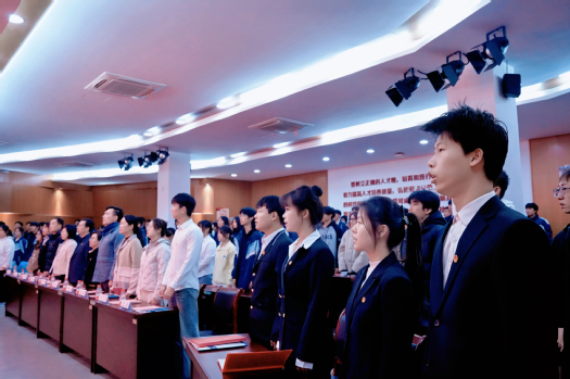 12月9日,科创职院第二期青年马克思主义者培养工程开班仪式暨2025学年第一学期新团员入团仪式在4101会议室庄严举行,活动以“从一二·九到新征程,青春与时代同行”为主题,旨在引领广大青年坚定理想信念、勇担时代使命。副校长项国平,马克思主义学院、校团委、各二级学院负责人出席活动,青马工程学员、新发展团员及学生代表齐聚一堂,共同见证这一青春奋进的重要时刻。活动回顾01奏唱国歌仪式在雄壮的国歌中拉开序幕02领导讲话项国平向新一期“青马工程”学员表示热烈的祝贺,向光荣加入中国共产主义青年团的新团员们致以诚挚的欢迎。他勉励大家,无论是“青马”学员还是新团员,都应深刻认识到,新时代的爱国主义,既需要炽热的情感,更需要扎实的行动。他希望,同学们要回望历史,汲取“一二·九”运动的磅礴精神力量,立足当下,认清新时代赋予青年的光荣使命,并将其转化为在平凡岗位上刻苦学习、钻研技能、创新创造的实际成效。03 宣布青马工程班学员名单仪式上宣布第二期青马工程班学员名单。马克思主义学院、校团委负责人为青马工程班授旗并赠予书籍。智能制造学院陈浩然同学作为青马学员代表发言,号召同学们不仅学习理论知识,更要积极投身实践