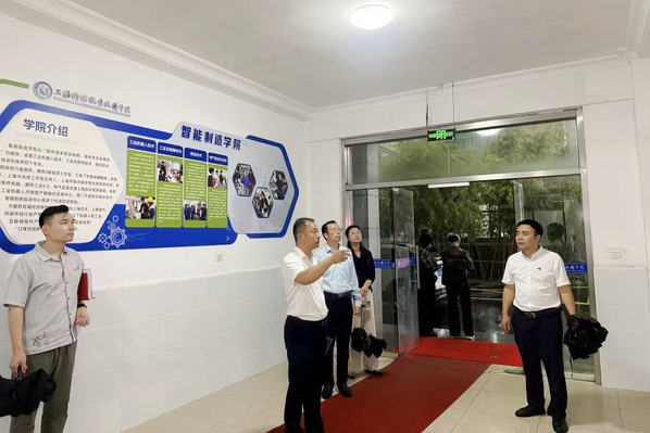 调研组一行实地考察二级学院教学空间、实训中心、党建阵地等,对学生管理、环境育人、实训场地布局和思政元素融入提出指导建议。