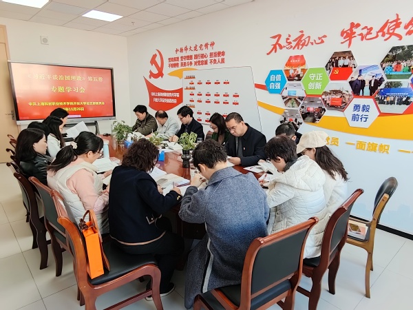 11月26日上午,开放大学党总支召开专题学习会议,集体学习《习近平谈治国理政》第五卷。党总支书记、校长李闽洲出席会议并作专题讲话。党总支委员、松江开放大学副校长藏鸿雁领学“建设更高水平的法治中国”等相关篇目。党总支委员梁晓琦主持会议。全体党员参加会议。