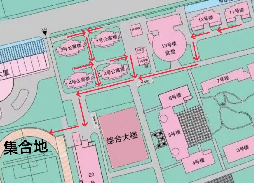 3、本次突发事件应急演练以广播报警声或应急呼喊为警报信号,住宿生听到警报信号后,立即停止个人活动,有序撤离宿舍。全体住宿生应高度重视本次演练,每幢公寓楼设楼长一名,负责该公寓楼住宿生撤离工作,并清点人数。每个楼层设楼层长一名,负责该楼层住宿生撤离工作,并清点楼层人数。