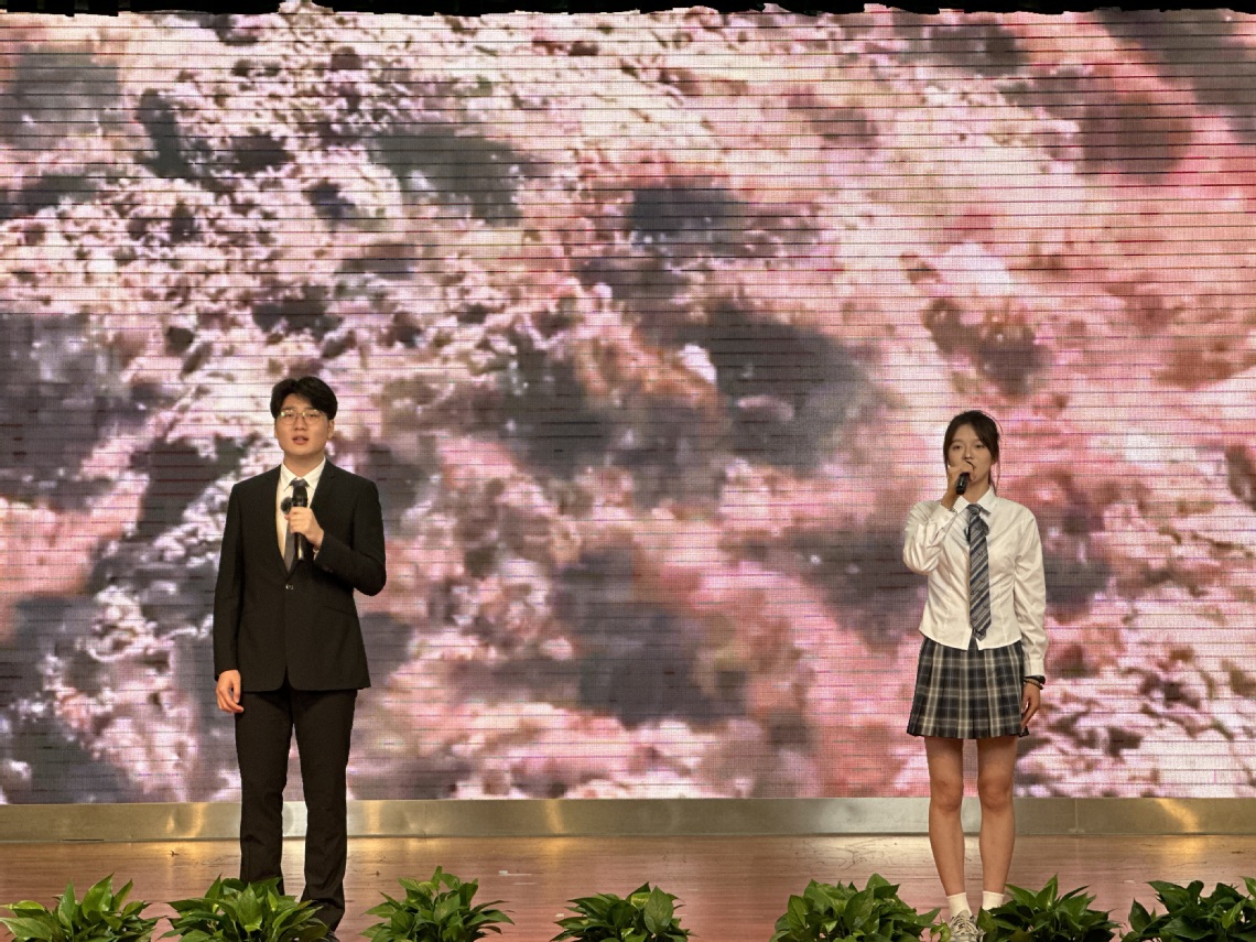 智能建造学院学生陈梦冉、牛承辉深情朗诵了诗歌《大国工匠》,弘扬工匠精神,实现薪火相传,同时激发爱国情怀与民族自豪感。智能汽车学院新能源2352班铿锵有力地朗诵作品《少年中国说》,展现了新时代青年的蓬勃朝气与对未来的无限憧憬,进一步鼓舞了大家为实现中华民族伟大复兴的中国梦而不懈奋斗的决心和信心。智能制造学院学生张欣怡以温婉细腻的嗓音朗诵了《月光下的中国》,勾勒出一幅幅关于家国情怀的美丽画卷。《百年征程中国梦》《我爱祖国》《不朽》《青春中国》等充满爱国情感的诗歌,见证了“七十五载辉煌路,砥砺奋进强国梦”的辉煌篇章。