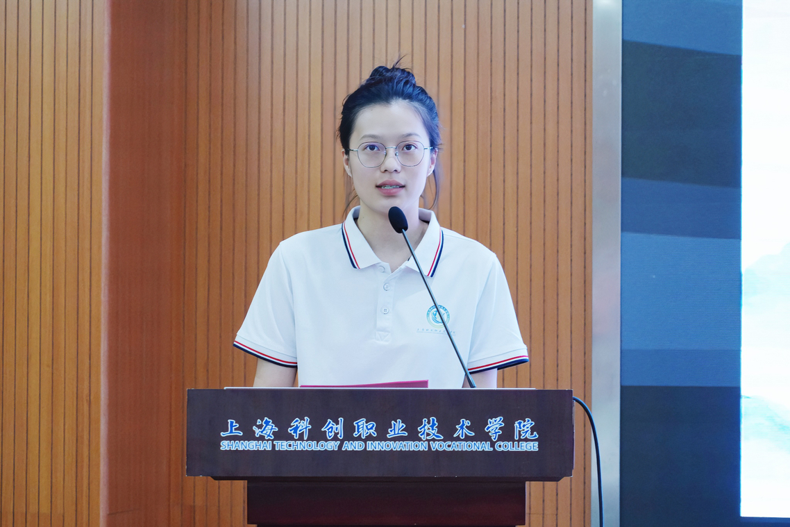 装饰2331班陈梦冉作为学生代表,分享了参加第六届和第七届中华经典诵写讲大赛的宝贵经历和收获。通过实地探访、团队协作深入演绎经典,她深刻体悟到经典是民族精神的活化石,青年学子是文脉的“守灯人”。她号召更多同学勇于尝试,在诵读、书写、讲解经典中传承文化火种,展现青春担当。