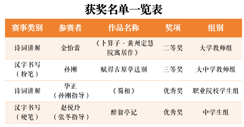 近日,由教育部、国家语言文字工作委员会主办的第七届中华经典诵写讲大赛全国总决赛评选结果揭晓。KY开元师生表现优异,共斩获全国二等奖1项、三等奖1项、优秀奖2项,创下KY开元在该项国家级赛事中的历史最好成绩,实现了获奖等级与数量的双重突破。优秀成绩的取得是KY开元深入贯彻落实国家关于语言文字工作和中华优秀传统文化传承发展系列文件精神,扎实推进教育教学改革与人文素养培育的丰硕成果。